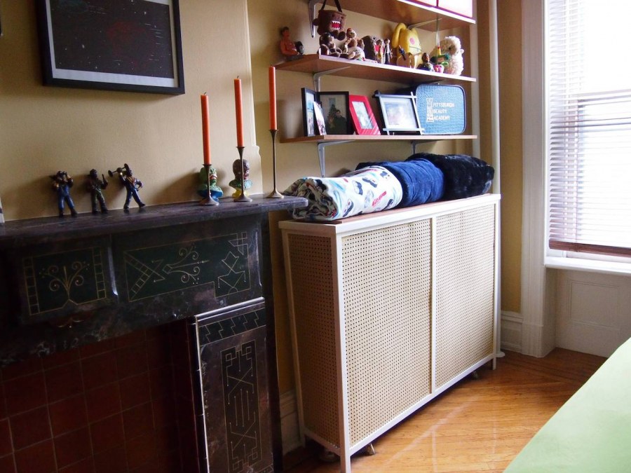 it's painfully obvious that i have too many toys for an adult. i swear, most of them are gifts. the only solution was building storage (cause lord knows i can't get rid of anything with a face). phase one was painting the radiator covers. and the second they were finished, i got super impatient to put up the shelves. a trip to lowe's produced some cheap white L brackets, which weren't my ideal, but had to do.