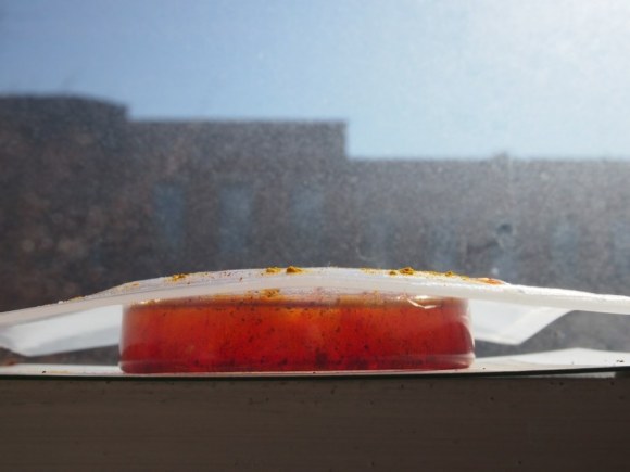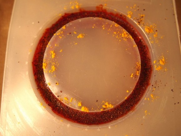 verdict: should not have started with darkest color first. way too much of all spices. final color nice, completely opaque. grains of chili barely perceptible.