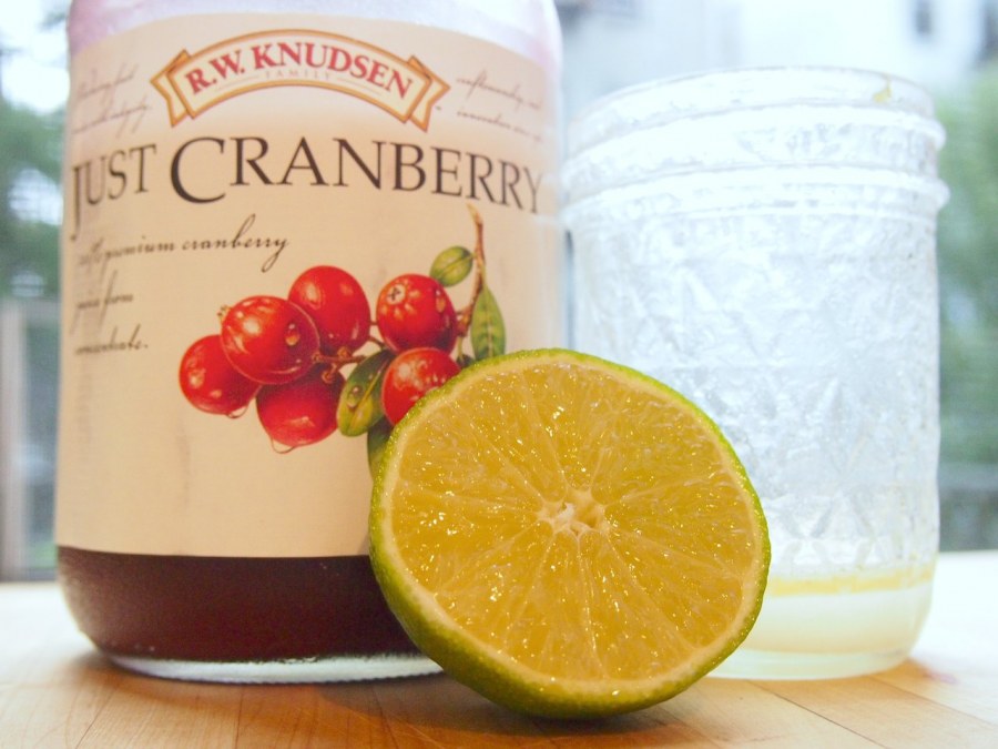 - fill a tall glass 1/3 way with cranberry juice. add a squeeze of lime, and small drizzle of honey(agave/stevia). stir well to make sure the sweetener is dissolved. take a taste. too tart? add a bit more sweetener- but not too much. it should have a pucker factor of 7 out of 10.