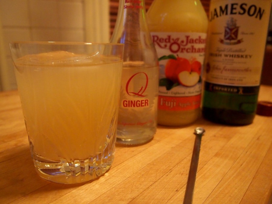 - 2 parts apple juice, not from concentrate (also good stuff- if you live in NY, red jacket orchard has fuji apple juice that will blow your mind)