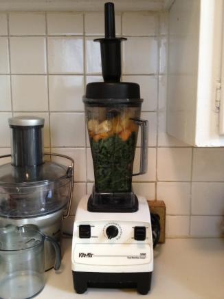 close the lid and blend the heck out of it. i have a tamper in my blender, which is helpful for smashing the ingredients down. if using a smaller size blender, go with a more tender leaf, like baby spinach to prevent chunks- if a smoothie is not smooth, it's gross.