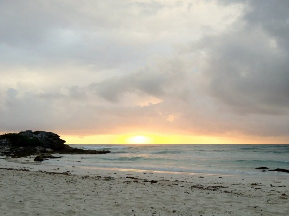 Tulum, Mexico was known as "Zama" by the Mayans, which means "city of dawn"- and a more appropriate name, there is not. It usually began with a neon orange ball of fire (gotta love natural fluorescence) that evolved into a bright yellow/white blinding light. Completely different everyday, but alway insanely dramatic.