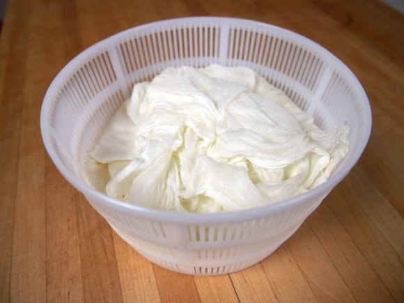 - squeeze the whey from the curds. add the salt, and mix it in gently. pull up the corners of the cheese cloth, and squeeze out the excess whey. tie the corners into a knot, and hang the cheese over a sink for at least 15 minutes, or up to an hour. if using a cheese basket, press the cheese (clothed) into the basket. let sit until the desired texture is achieved- if eaten right away, it will be soft like ricotta. if sat on it for a day, it will be harder and crumbly. both are delicious.