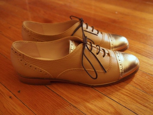 let's just say that i bought some shoes that couldn't be returned that were way too gold. blindingly gold. i really wanted them, just in another color. spray painting seemed like a logical solution.
