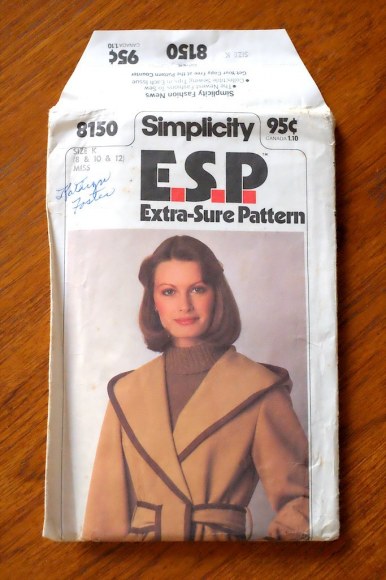 Simplicity 8150 from 1977. It is a "blanket" coat construction, and was used mainly for the hood pattern. The body and sleeves were draped on a dress form, and pinned to a muslin of the hood. the drape of the sleeve looked something like this: