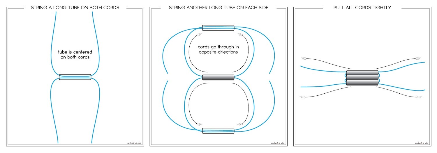 - slide a medium tube on one side, then in the opposite direction, push the other side through.